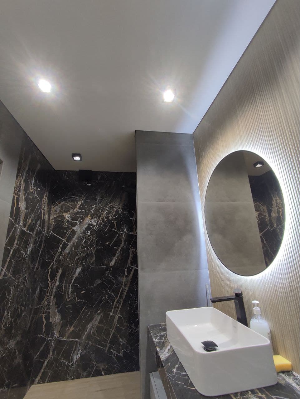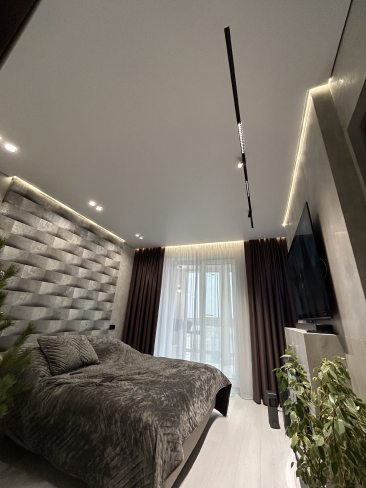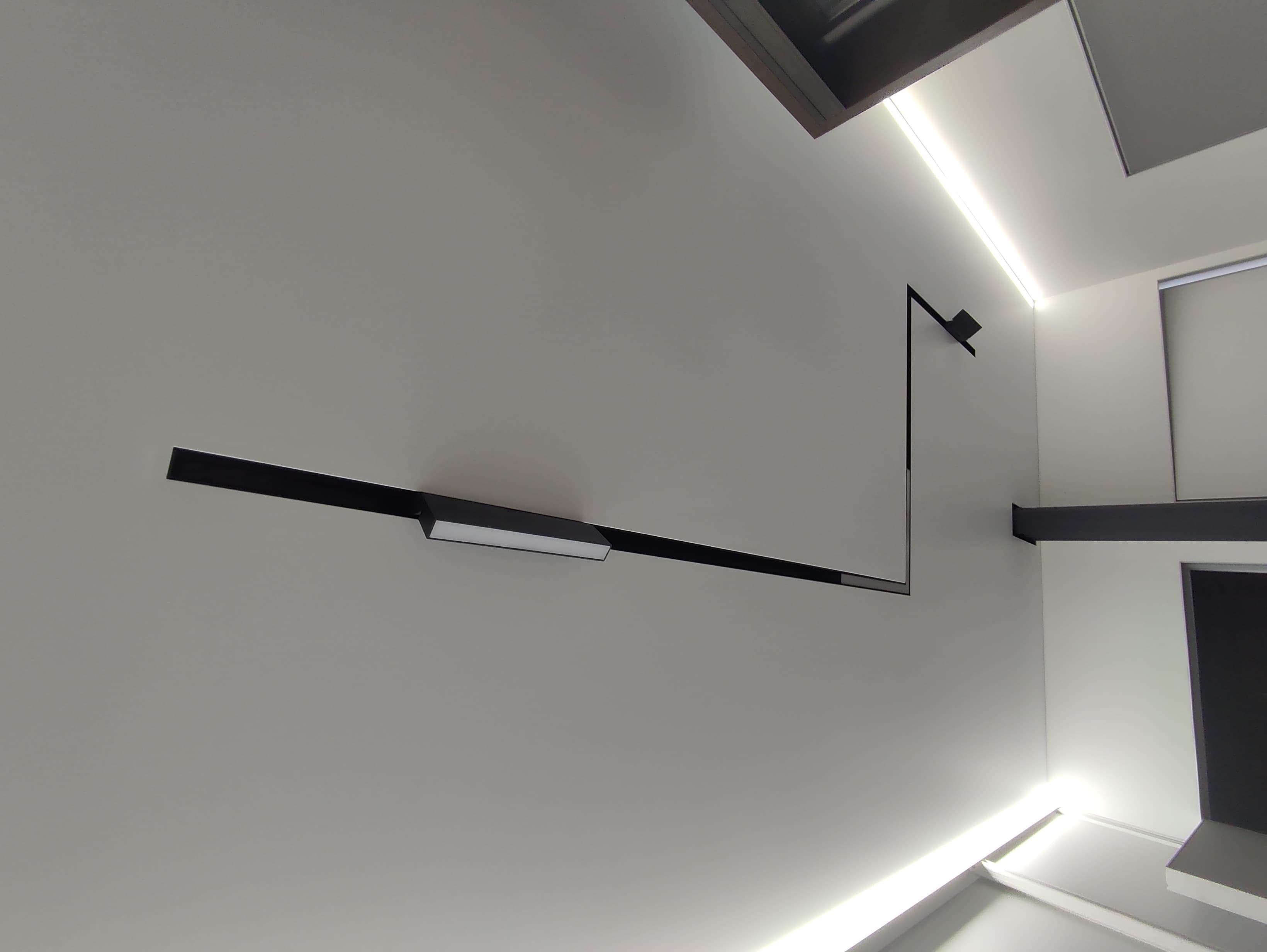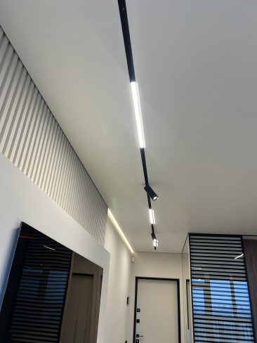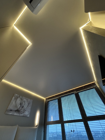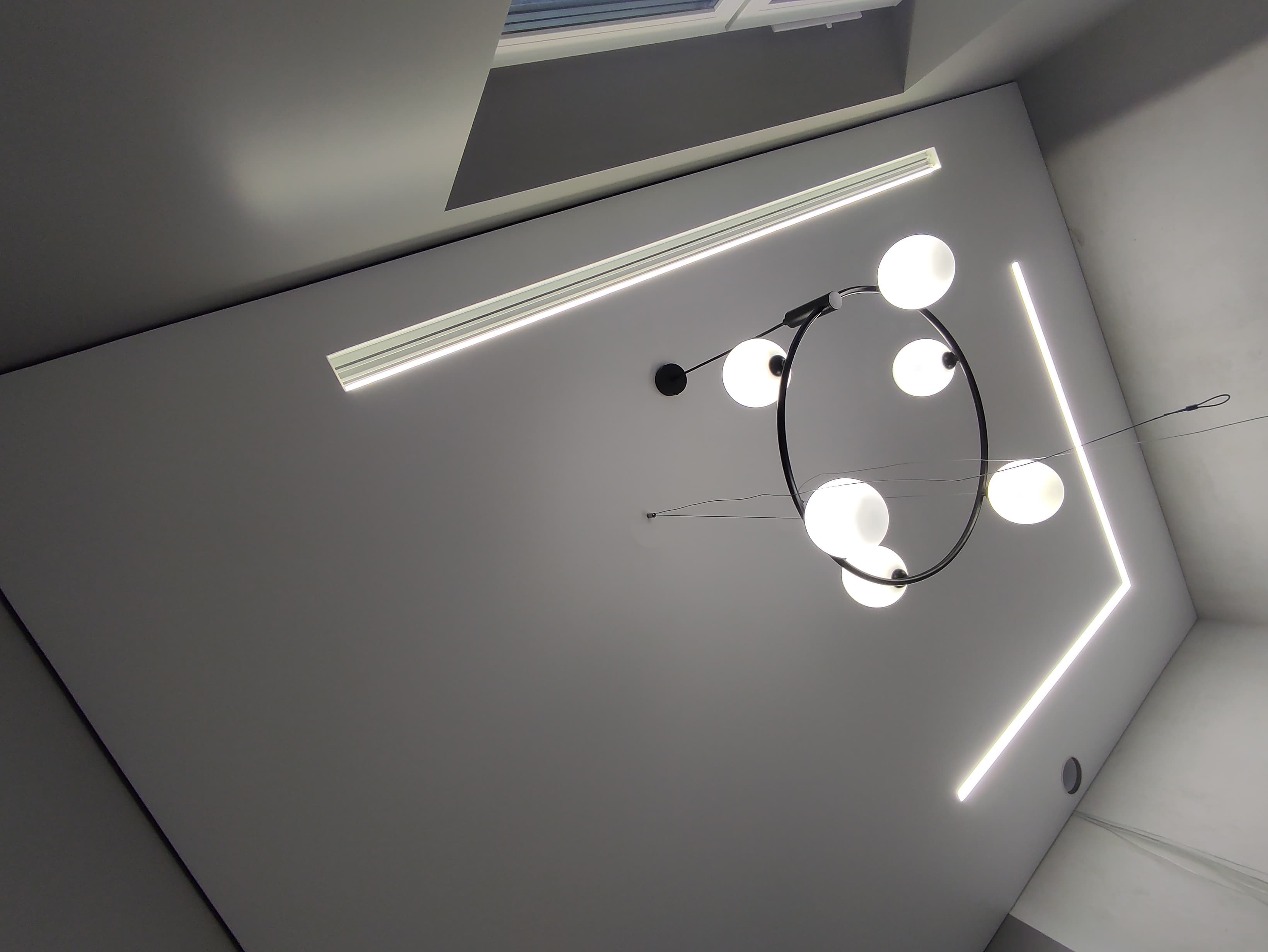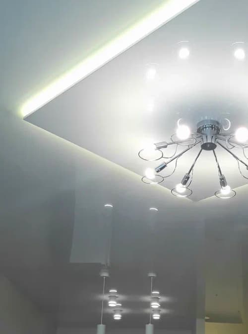 У нас есть с собой чудесный чемодан с образцами светодиодных лент, точечных светильников и подсветки. Вы сможете выбрать подходящий вариант для вашего интерьера и убедиться в том, что будет сочетаться с цветом и оттенком вашего натяжного потолка.