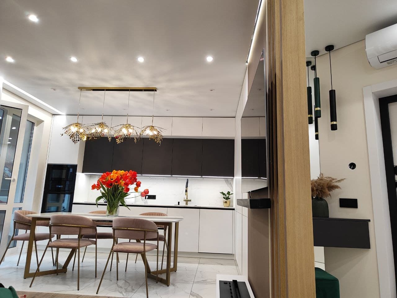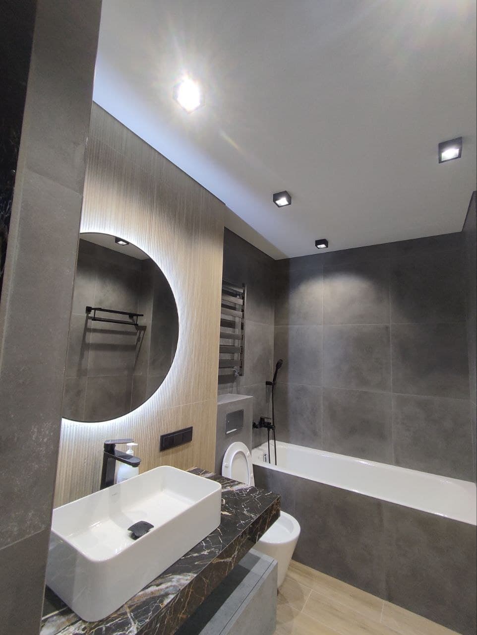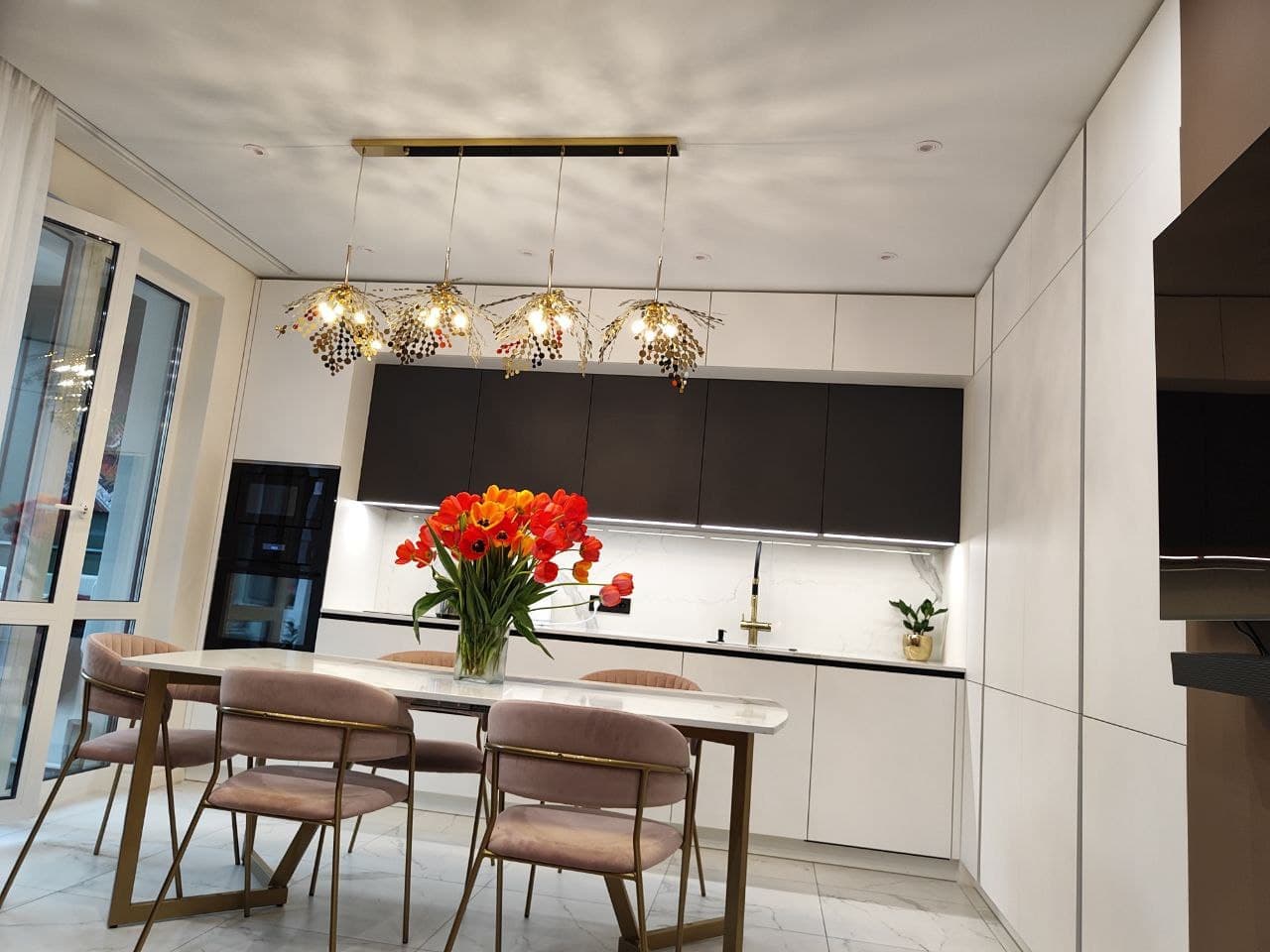 У нас есть с собой чудесный чемодан с образцами светодиодных лент, точечных светильников и подсветки. Вы сможете выбрать подходящий вариант для вашего интерьера и убедиться в том, что будет сочетаться с цветом и оттенком вашего натяжного потолка.