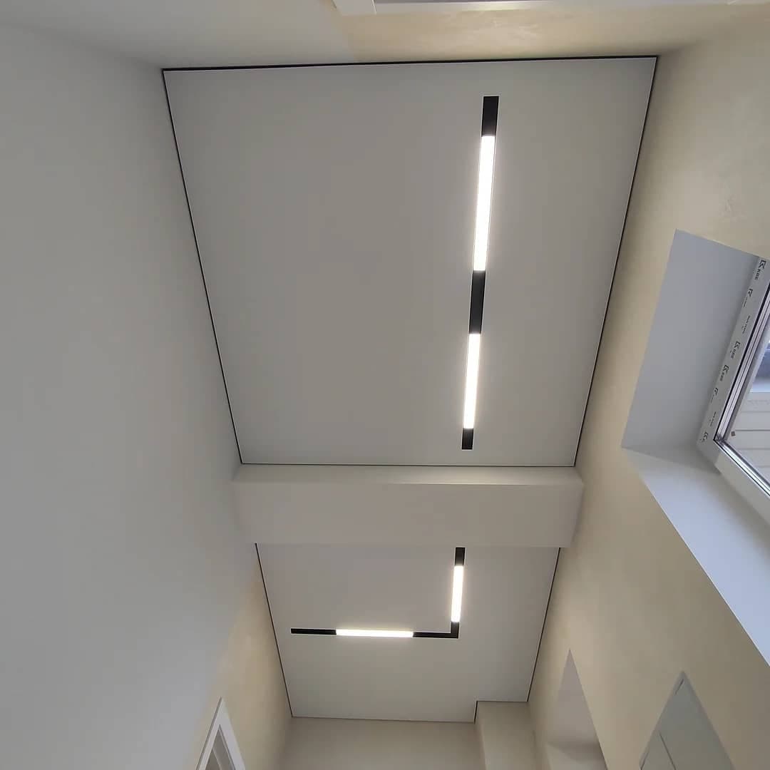 - На втором уровне потолка можно скрыть проводку, вентиляционные и кондиционерные системы