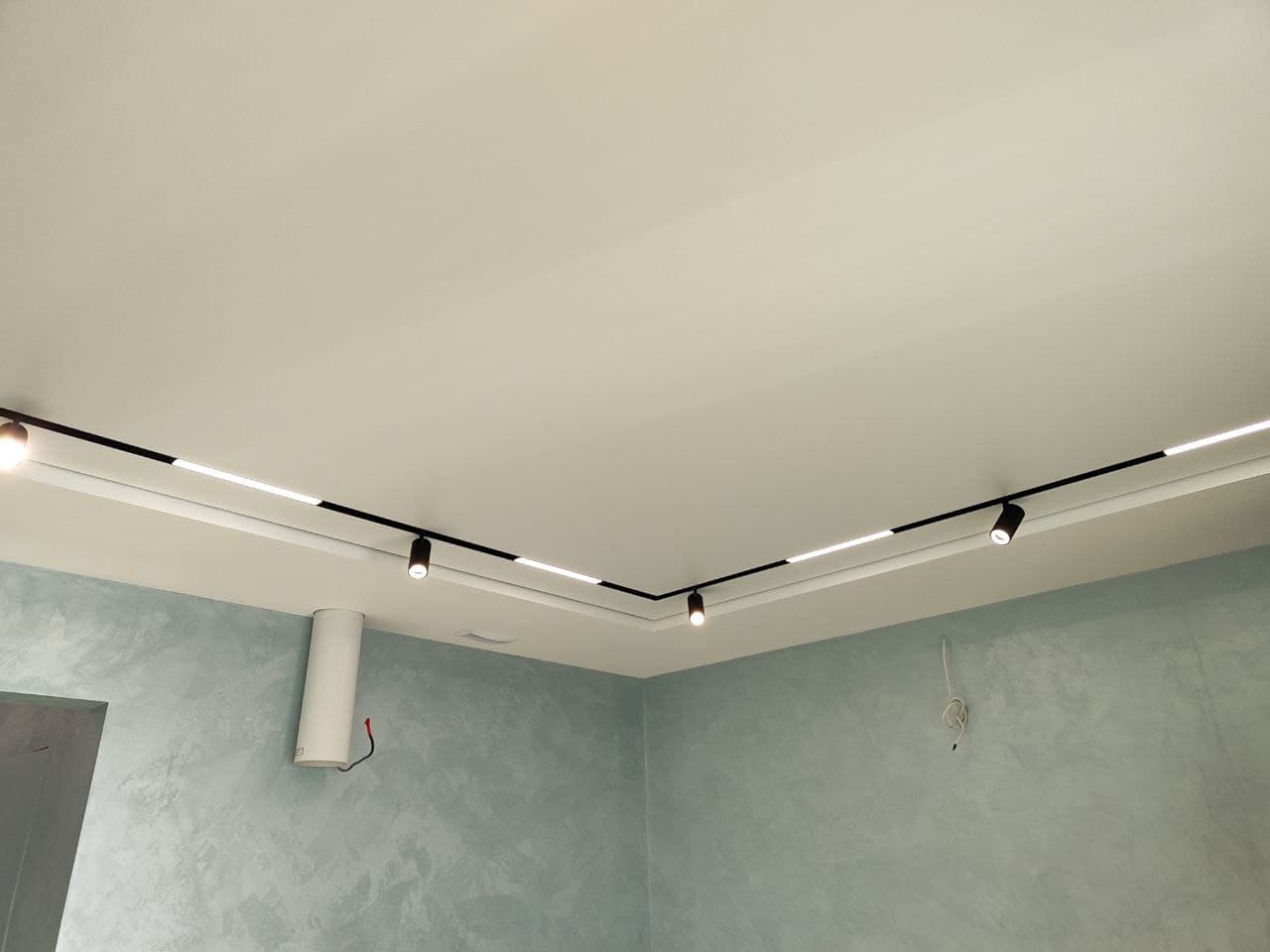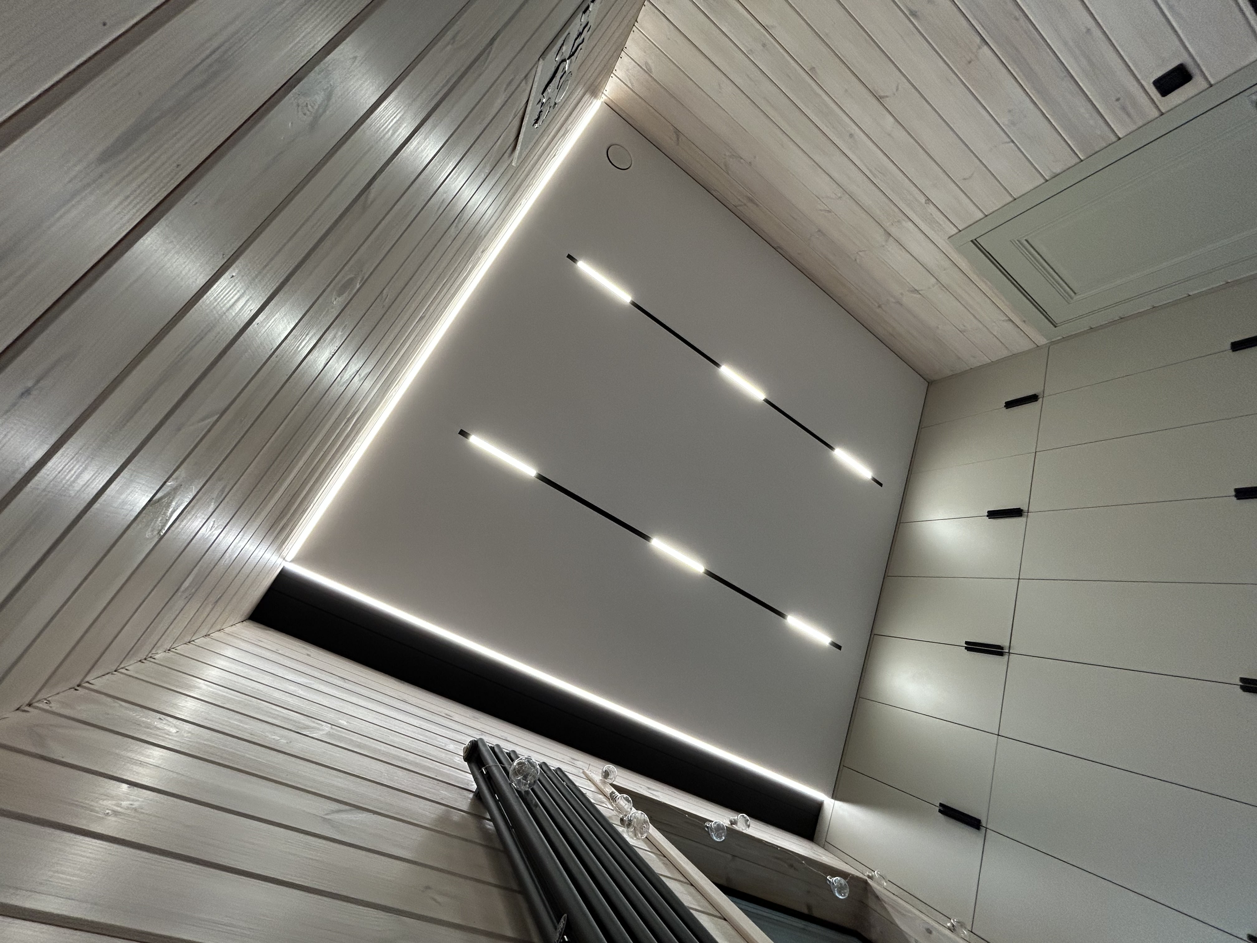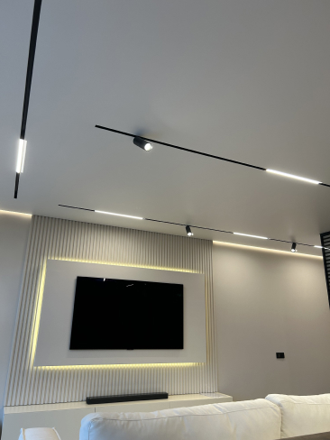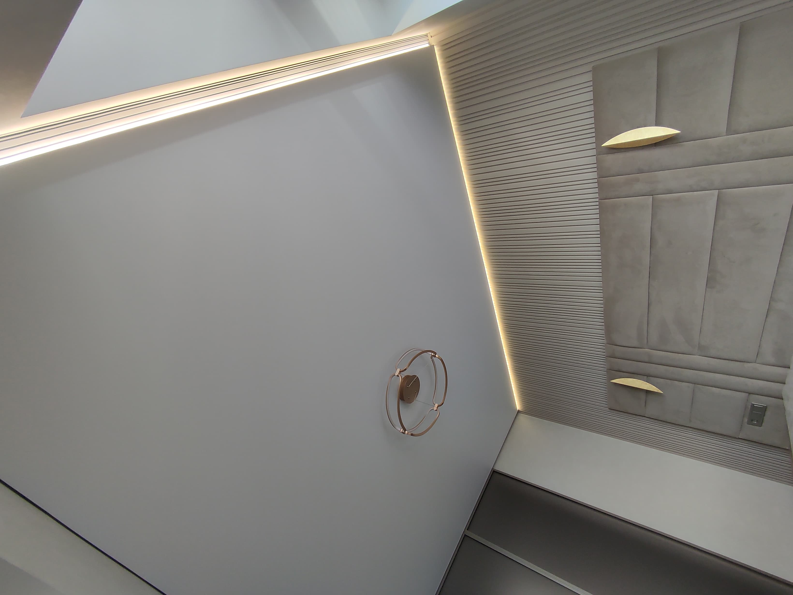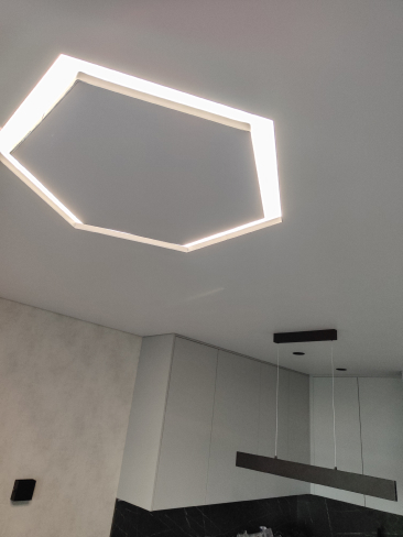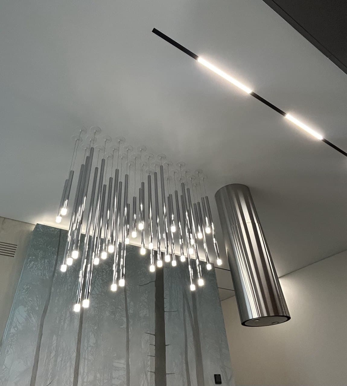 У нас есть с собой чудесный чемодан с образцами светодиодных лент, точечных светильников и подсветки. Вы сможете выбрать подходящий вариант для вашего интерьера и убедиться в том, что будет сочетаться с цветом и оттенком вашего натяжного потолка.