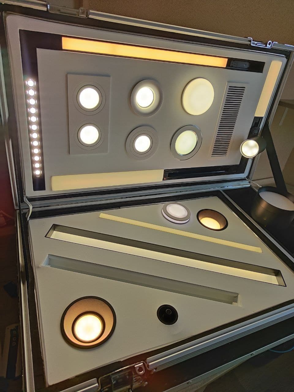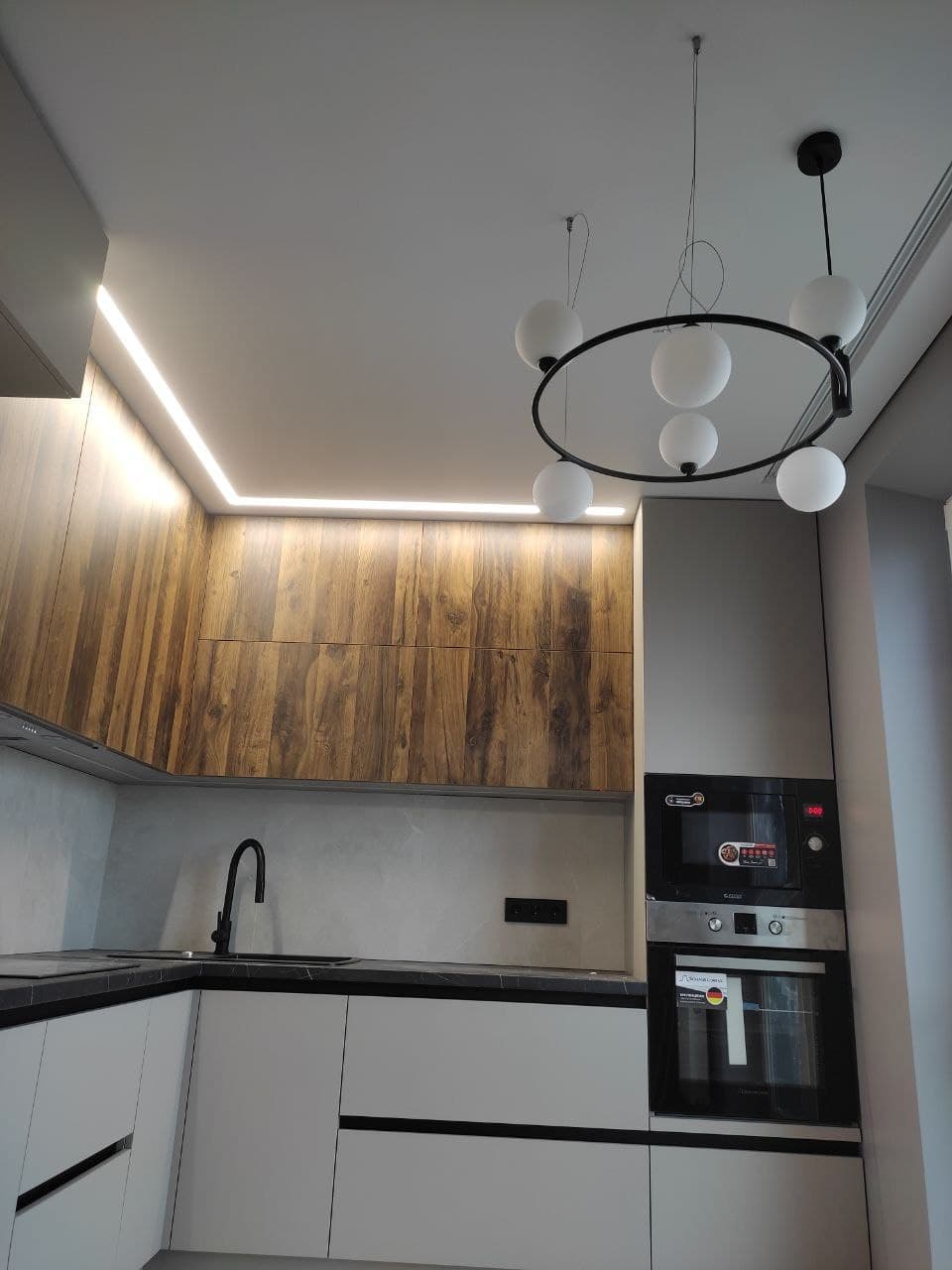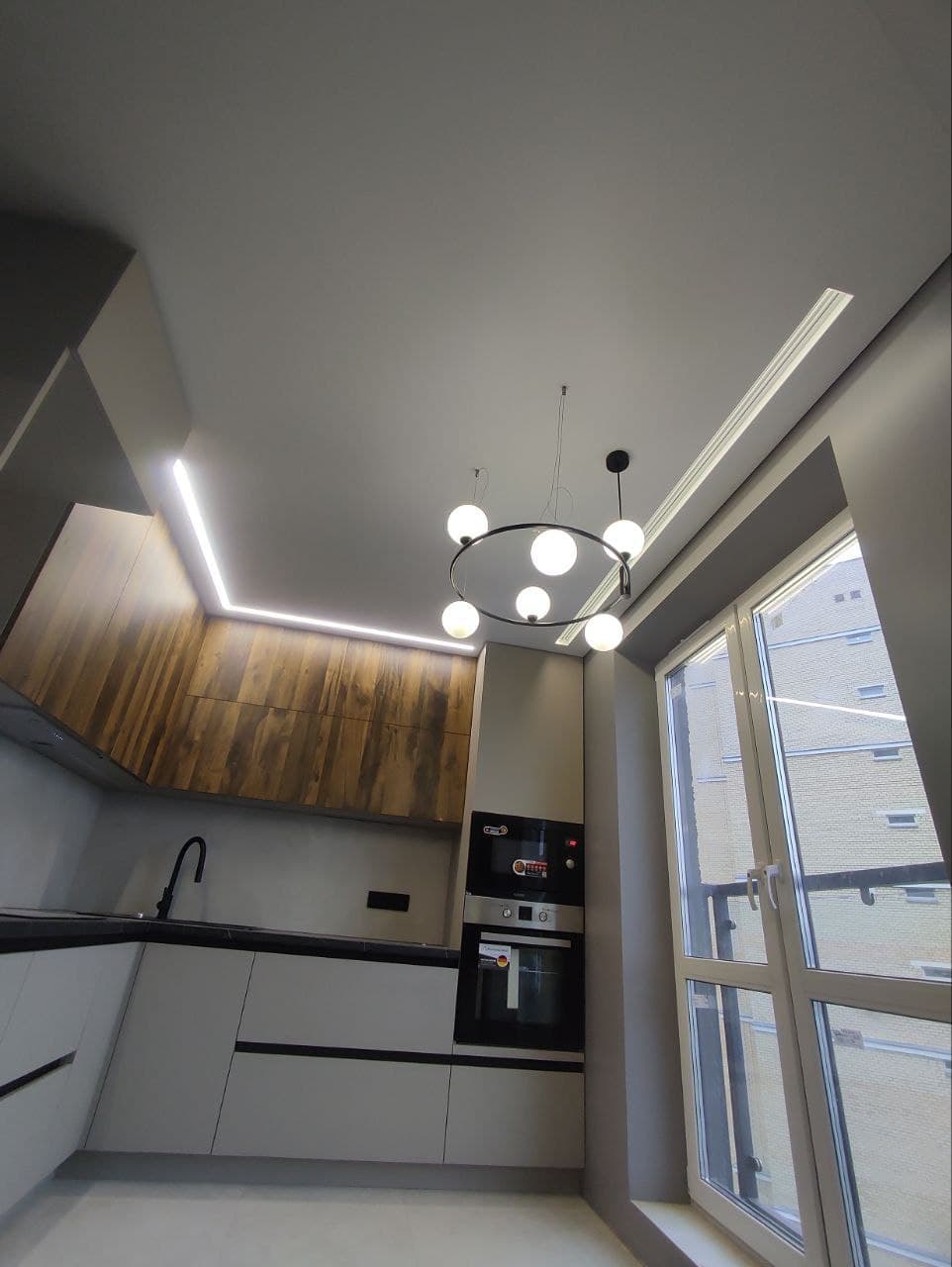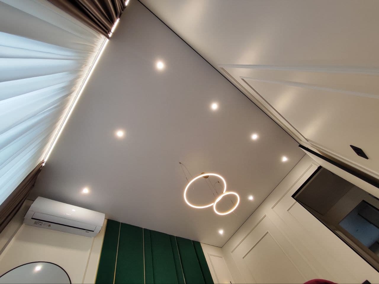 У нас есть с собой чудесный чемодан с образцами светодиодных лент, точечных светильников и подсветки. Вы сможете выбрать подходящий вариант для вашего интерьера и убедиться в том, что будет сочетаться с цветом и оттенком вашего натяжного потолка.